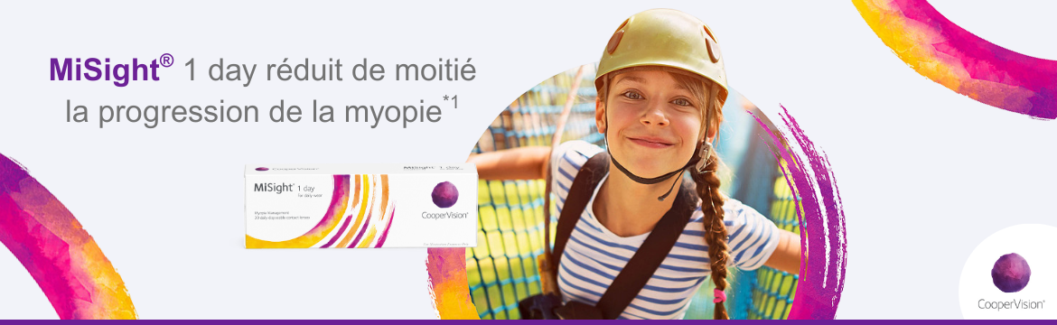 Les lentilles de contact souples MiSight® 1 day (omafilcon A) sont indiquées pour la correction de la myopie et la réduction du taux de progression de la myopie chez les enfants (6-18 ans).