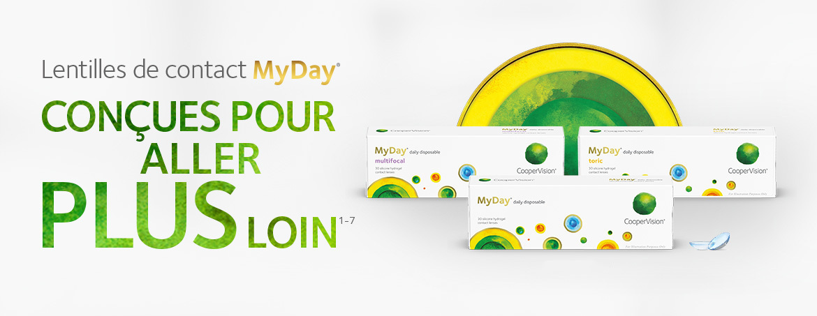 Les lentilles de contact souples MyDay® (stenfilcon A) sont indiquées pour la correction de la myopie ou de l’hypermétropie. Les lentilles de contact souples MyDay® toric (stenfilcon A) sont indiquées pour la correction de la myopie ou de l’hypermétropie, accompagnée d’astigmatisme. Les lentilles de contact souples MyDay® multifocal (stenfilcon A) sont indiquées pour la correction de la myopie ou de l’hypermétropie, accompagnée de presbytie. Ces lentilles jetables journalières, à usage unique, ne doivent être portées qu’une seule fois et jetées après chaque utilisation. Ne pas dormir avec.