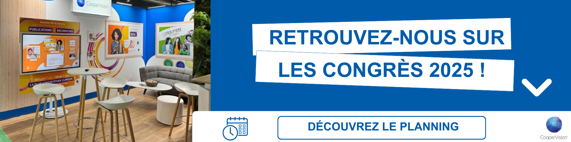 Retrouvez-nous sur notre stand pour parler des dernières évolutions en lentilles souples sur la freination de la myopie de l'enfant.