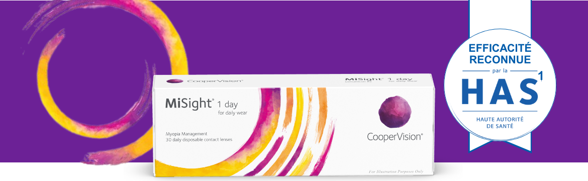 Les lentilles de contact souples MiSight® 1 day (omafilcon A) sont indiquées pour la correction de la myopie et la réduction du taux de progression de la myopie chez les enfants (6-18 ans).